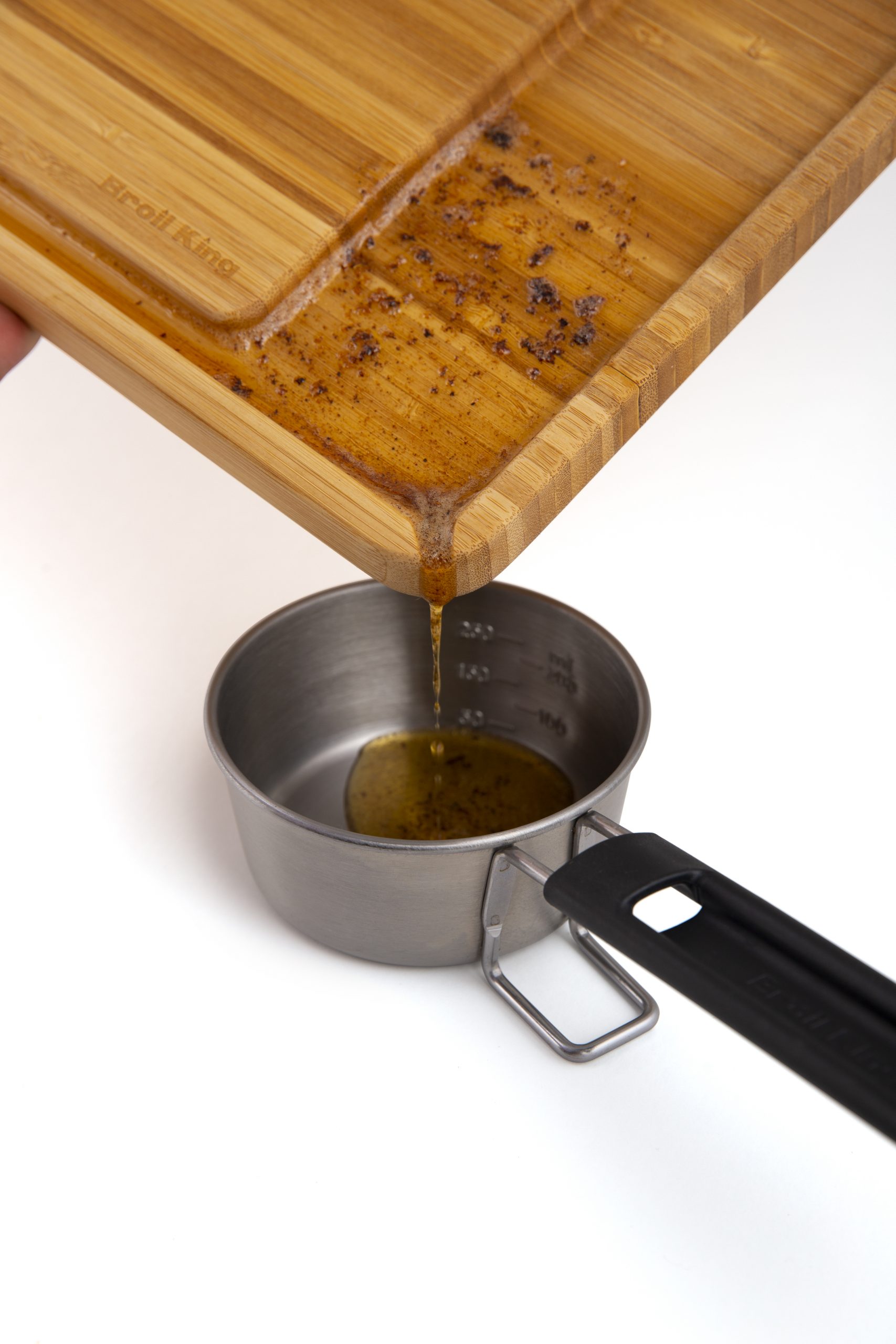 Die umlaufende Rinne mit integriertem Ablaufrand fängt Fleischsäfte zuverlässig auf und hält die Arbeitsfläche sauber.