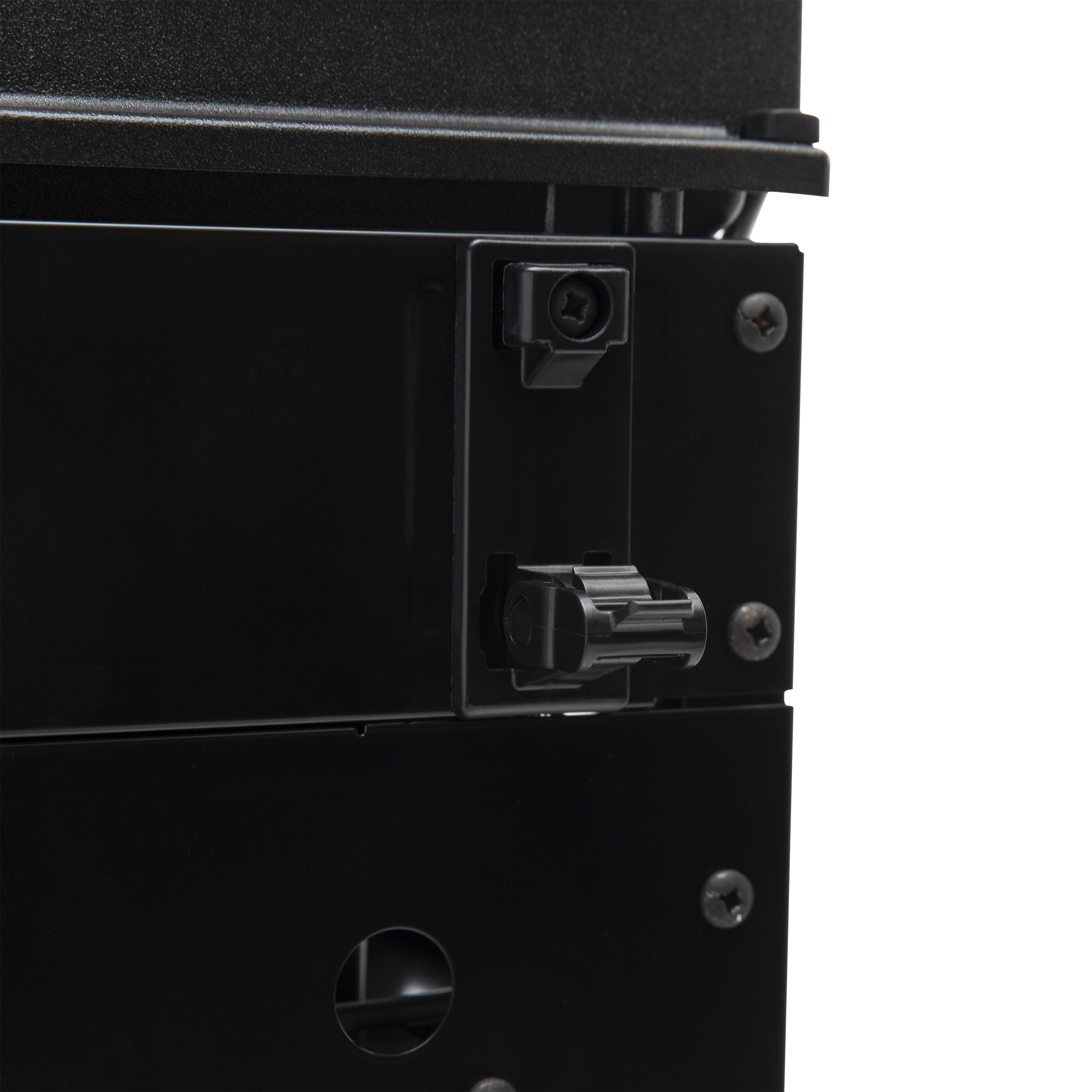2 schwarze Türen mit Edelstahlgriffen