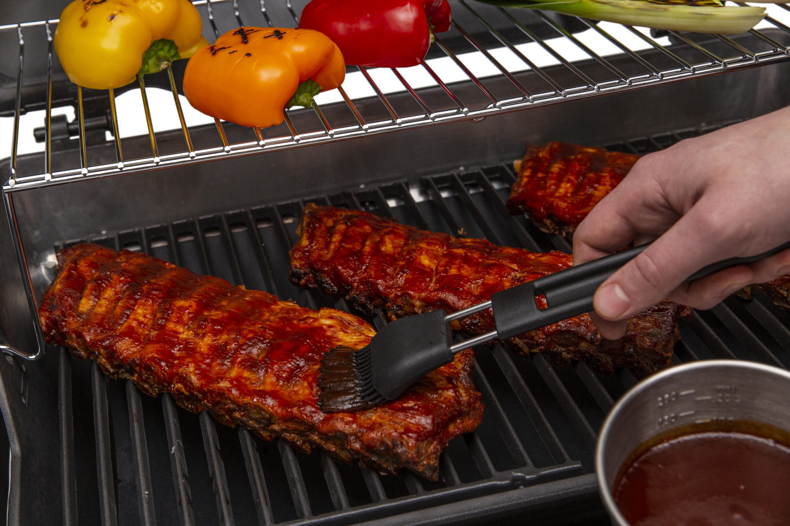 Das Set besteht aus einem hitzebeständigen Silikonpinsel sowie einem Edelstahl-Marinadentopf mit integrierter Messeinheit – ideal für perfekt abgestimmte Marinaden und Saucen.