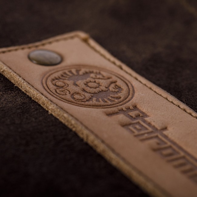 Die dunkelbraunen Handschuhe, gefertigt aus hochwertigem Rauleder, sind mit einer zusätzlichen