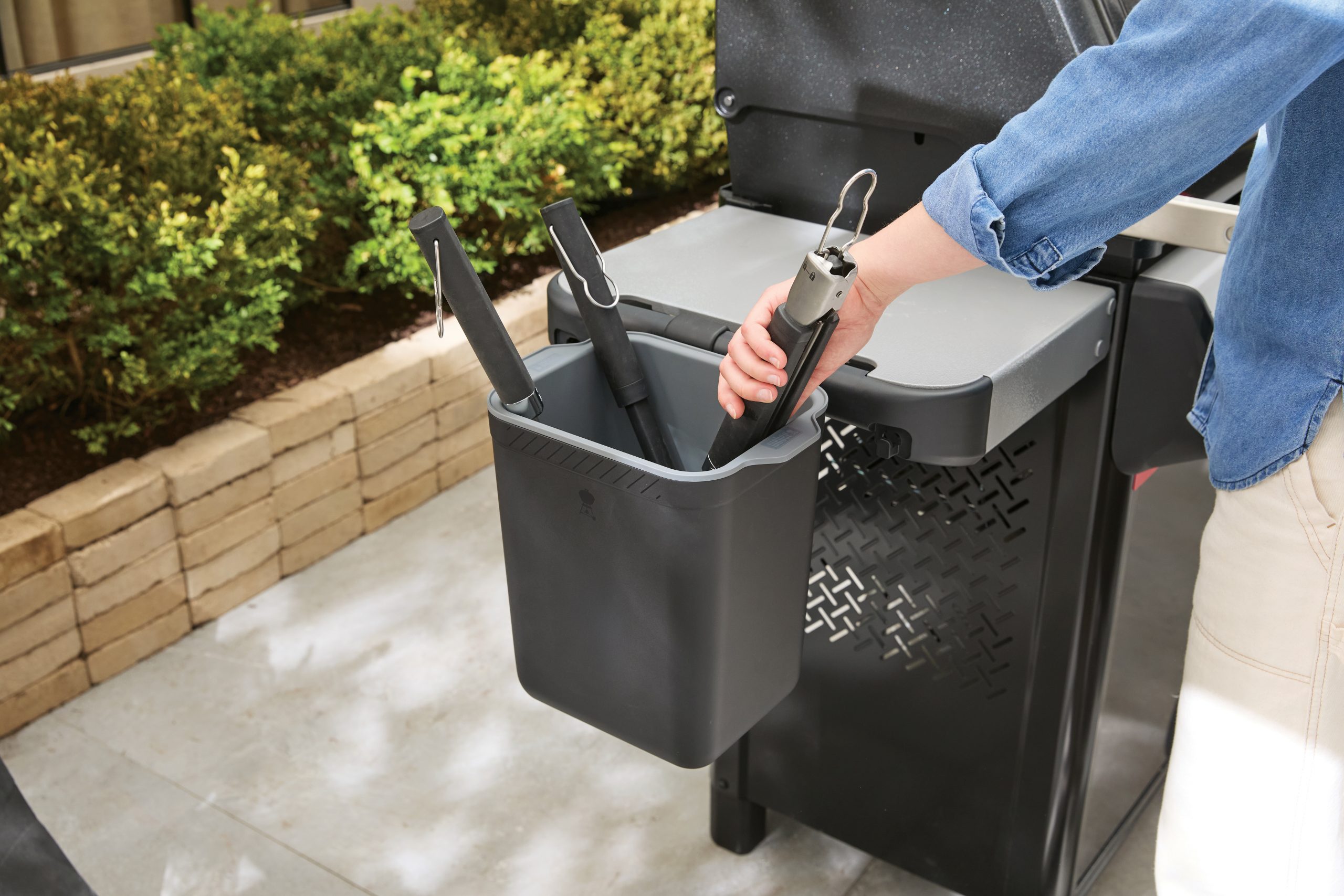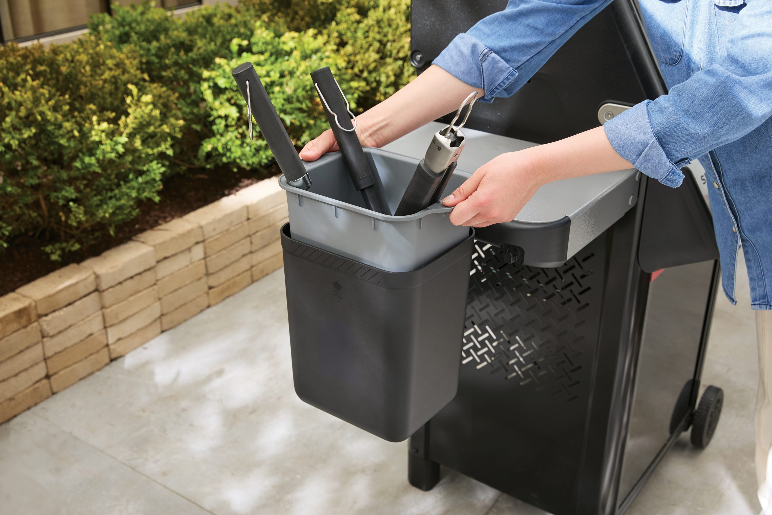 • Herausnehmbarer Einsatz für den Transport der Grillwerkzeuge von der Küche zum Grill.